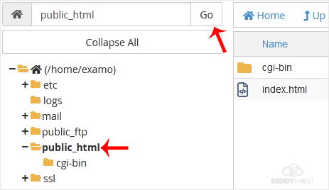 3. In the cPanel File Manager, navigate to the directory where you want to upload your files. The public HTML directory is the most common location for website files. To access it, click on public_html in the list of directories on the left side.