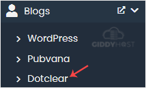 4. On the left side, locate the Blogs category. Click on it and then on the Dotclear link that appears.