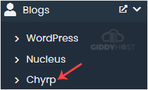 4. On the left side, locate the Blogs category. Click on it and then on the Chyrp link that appears.
