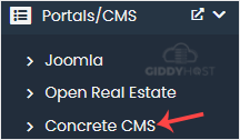 4. On the left side, locate the Portal/CMS category. Click on it and then on the Concrete CMS link that appears.