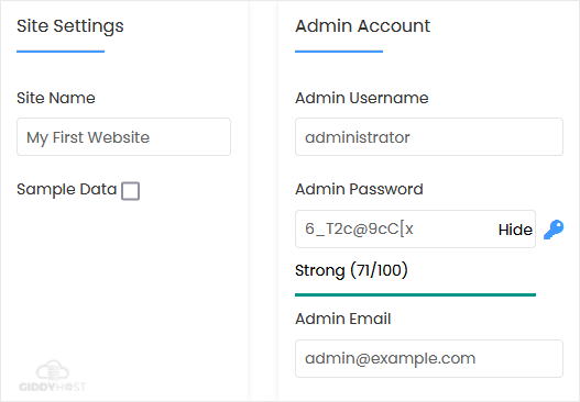 • Admin Email: Your e-mail address.