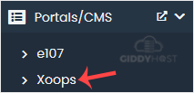 4. On the left side, locate the Portal/CMS category. Click on it and then on the Xoops link that appears.