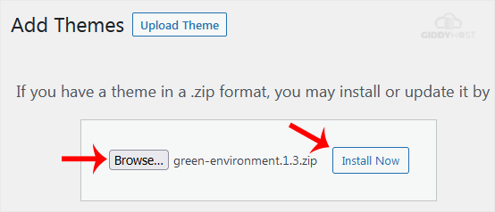 5. Click on Browse and choose the theme from your computer. Click on Install Now.