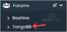 4. On the left side, locate the Forums category. Click on it and then on the TangoBB link that appears.