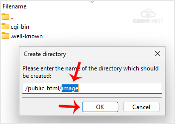 5. Enter the directory name, such as images or any other directory name you want to create.