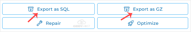 4. Scroll down to the Database Operations and click Export as GZ or Export as SQL.