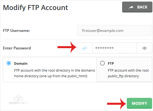 3. Under the list of FTP Accounts, choose the Account for which you want to change the password.