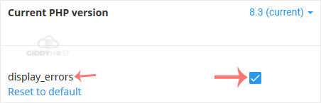 4. For enabling display_errors, tick mark it. For disabling it, uncheck it.